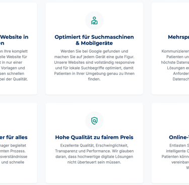 Werden Sie bei Google gefunden und machen Sie auf jedem Gerät eine gute Figur. Unsere Websites sind vollständig responsive und für lokale Suchbegriffe optimiert, damit Patienten in Ihrer Umgebung genau zu Ihnen finden.