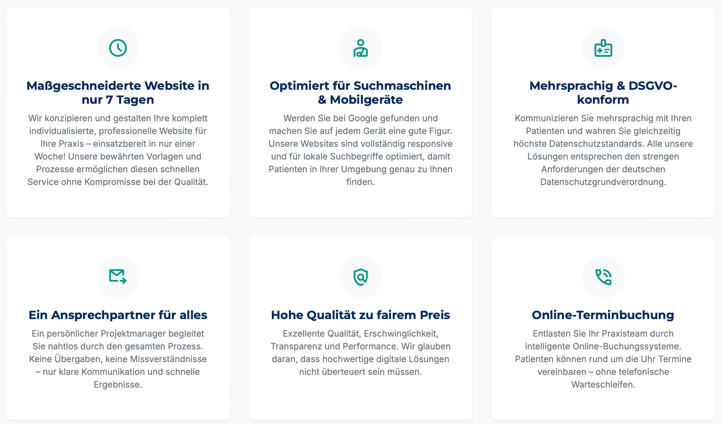 Ein persönlicher Projektmanager begleitet Sie nahtlos durch den gesamten Prozess. Keine Übergaben, keine Missverständnisse – nur klare Kommunikation, schnelle Ergebnisse und eine perfekt abgestimmte Praxis-Website.